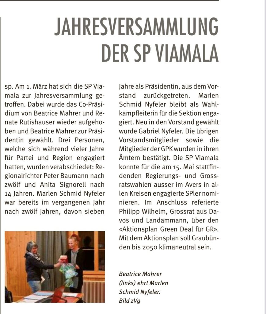 Jahresversammlung SP Viamala, 01.03.2022