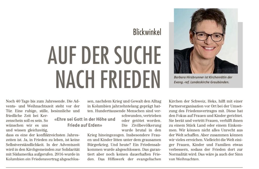Blickwinkel “Auf der Suche nach Frieden”, Barbara Hirsbrunner