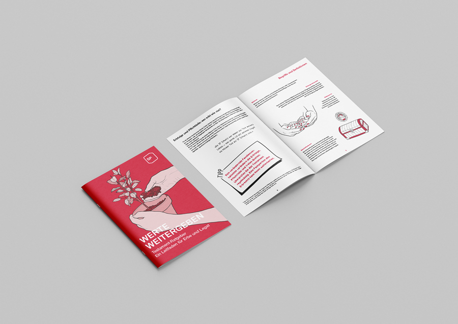 Unser kostenloser Ratgeber «Werte weitergeben» beantwortet die wichtigsten Fragen rund um das Testament und zeigt auf, wie die SP berücksichtigt werden kann.